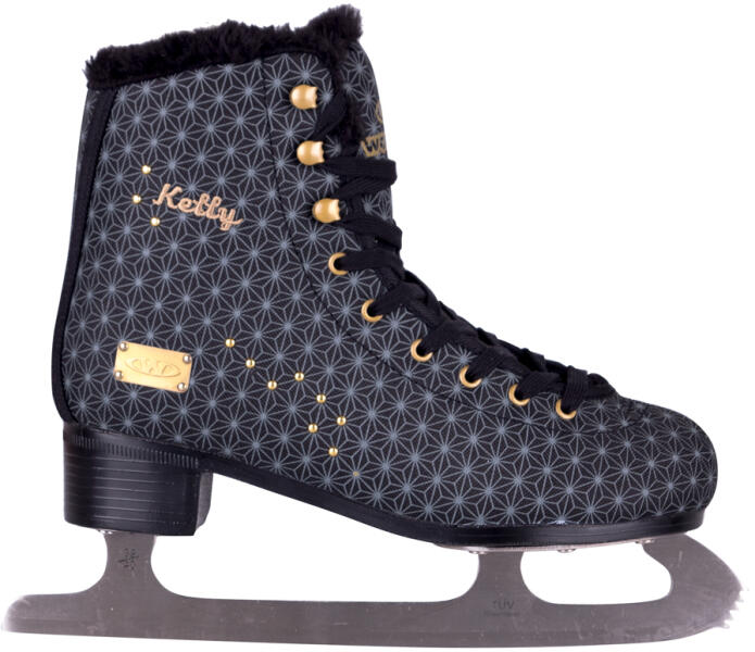 Az inSPORTline Doty jégkorcsolya egyedi kidolgozása, attraktív arany színe garantáltan minden női szemet vonzani fog. A jégkorcsolya színben tökéletesen harmonizáló hollófekete szörmével bélelt. A ThermoFit tehnológiának köszönhetően az  inSPORTline Doty jégkorcsolya  maximálisan tartja az optimális hőt a láb számára. Ennek köszönhetően az inSPORTline Doty jégkorcsolya  korcsolyázás közben kellemes és természetes érzést biztosít viselőjének. A jégkorcsolya pengéi minősített rozsdamentes acélból készülnek, amely garantálja a kiváló menettulajdonságokat. A Safety Ankle rendszernek köszönhetően a többpontos rögzítés stabilan tartja a lábat. Az egyedi kivitelezésnek köszönhetően garantáltan kitűnsz a jégpályán az  inSPORTline Doty jégkorcsolyában.