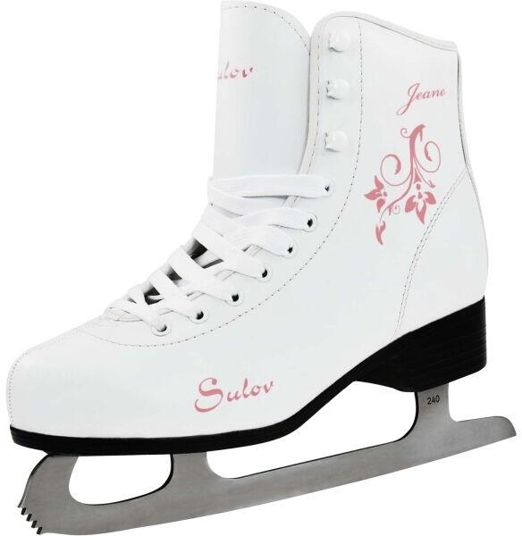 Sulov JEANE női jégkorcsolya diszkrét mintával kezdőknek. Műbőrből készült. A korcsolya rögzítése klasszikus fűzővel történik.