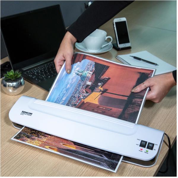 A Sencor SLA 310 lamináló segítségével megvédheti fényképeit vagy egyéb dokumentumait a nedvességtől és egyéb környezeti hatásoktól. A készülék ideális választás 150 - 250 mikronos fóliák (2x75 - 2x125) használatához. A gyors felmelegedési idő leteltével a laminálógép azonnal használatra kész. A laminálás folyamata rendkívül egyszerű és csendes. A felületbevonási sebessége kb. 300 mm/percenként. A készülék meleg és hideg laminálásra egyaránt alkalmas, és így az összes bizonyítványt, képet, dokumentumot, rajzot, nyomtatott papírt, meghívót, fényképet, naptárt és térképet egészen A3-as méretig is védelemmel tudja ellátni. A kéthengeres tolórendszer köszönhetően a megakadt dokumentumok gyorsan és egyszerűen kiszabadíthatók. 50%-kal kevesebb energiát igényel a konvencionális laminálóhoz képest