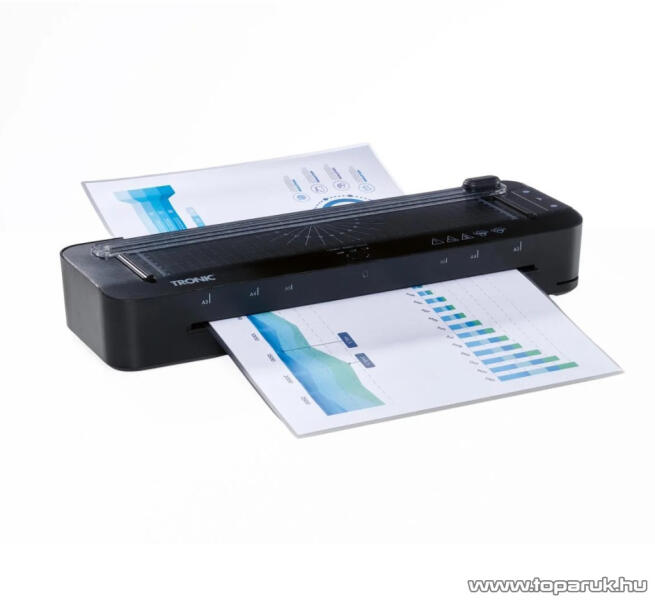 Tronic TLG 400 A1 BK Prémium A3 / A4 hideg - meleg lamináló gép, laminátor, laminálógép görgős papírvágóval és 8 db A3 lamináló fóliával, fekete, 400W