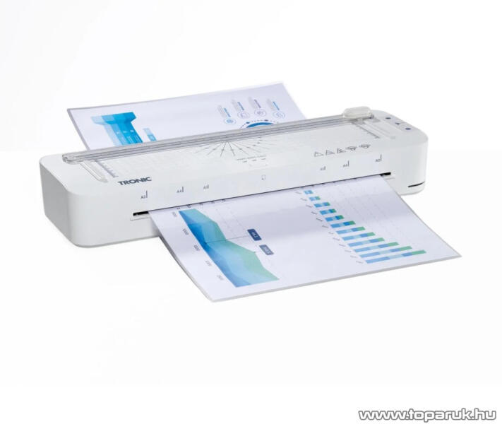 Tronic TLG 400 A1 WH Prémium A3 / A4 hideg - meleg lamináló gép, laminátor, laminálógép görgős papírvágóval és 8 db A3 lamináló fóliával, fehér, 400W