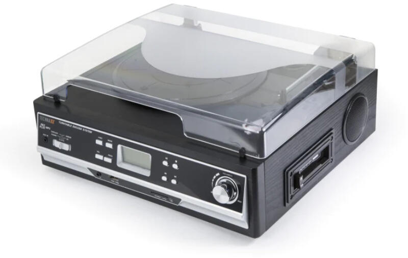 Technaxx lemez és kazetta digitalizáló  Digitalizálja az LP-ket és az audiokazettákat USB- vagy SD-kártyára akár 32 GB-ig  Zenelejátszás Bluetooth 2.0-n keresztül  Zenefájlok: Felvétel (MP3) &lejátszás (MP3/WMA) USB-ről vagy SD-kártyáról  AUX-IN külső eszközök számára  3.5mm-jack kimenet  Nincs szükség számítógépre/notebookra  RCA kimenetek a hi-fi rendszerekhez való csatlakozáshoz  Lemezjátszó automatikus megállással &3 sebességgel: 33, 45, 78 ford/perc  Beépített kazetts-deck  Beépített sztereó hangszórók: 2x 2 W-os sztereó, 7cm-es átmérő