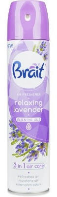 Brait légfrissítő illóolajokkal, az új 3 az 1-ben recept szerint. Semlegesíti a kellemetlen szagokat, frissíti és párásítja a levegőt. A tisztaság kellemes illata. 300ml spray, levendula illat.