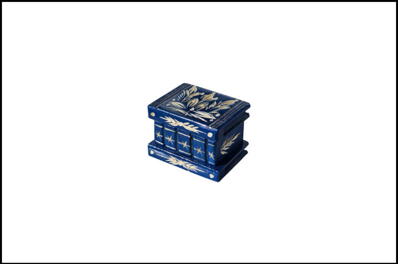 Fa titokdoboz. Kinyitása titkos módon, két lépcsőben történik. - A dobozt kézben tartva az alját hátratoljuk - a középső virág vagy csillag mintás takaró fedelet levesszük - a fedél alatt található a kulcslyuk - a kulcs a kulcslyuk alatti kis rekeszben van, amit lefelé fordítva a kulcs kicsúszik - a ládika a kulcs elfordításával nyitható (360°-ban jobbra)
