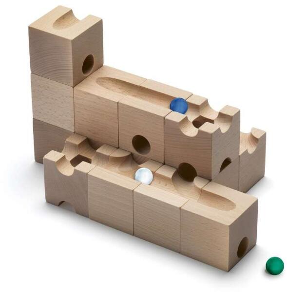 Fából készült játékkészlet gyerekeknek CUBORO, Trick, CBR215, 16 db, 5 márványgolyóval, 1-5 játékos részére, fejleszti a koncentrációt és a motoros készségeket, természetes fa