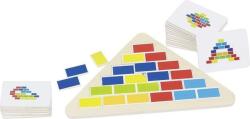 A GOKI téglás logikai építőjátéka borzasztóan egyszerű - lenne, ha különálló darabokból állna a készlet. Azonban több elem is összekapcsolat téglalapból áll, így a kártyákon mellékelt feladványokat nem is olyan egyszerű megoldani. A játék kiválóan fejleszti a