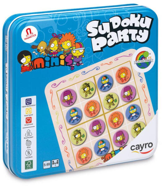 A Mágneses Utazó sudoku a klasszikus sudoku játék gyerekbarát változata, számok helyett színes, vicces figurákkal. A cél, hogy minden sorban és oszlopban minden figura csak egyszer szerepeljen. Ez egy logikai fejtörő, amely a gyerekek számára is érthető és élvezetes, mivel az alakok segítenek a szabályok megértésében. A fémdobozos kiadás miatt könnyen hordozható, tökéletes utazásokhoz és gyors otthoni szórakozáshoz. A játék nyelve angol, de nyelvfüggetlen, hiszen nincs szükség olvasásra, csak a szimbólumok helyes elrendezésére. Paraméterek: