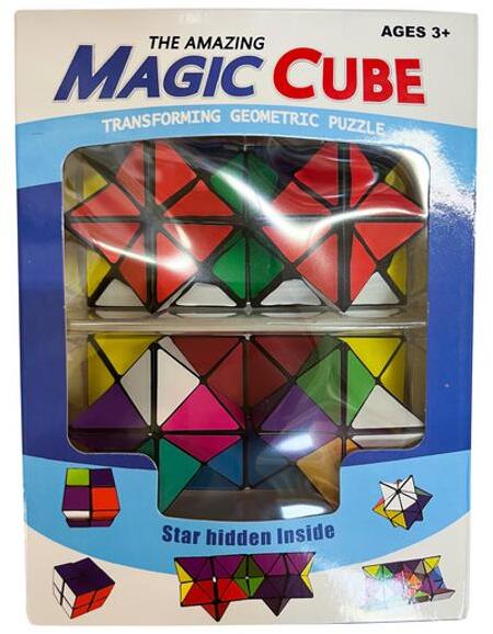A(z) **Mágikus kocka logikai játék** – Mágikus kocka logikai játék Korosztály: 8 éves kortól ajánlott. Hajtogasd a kockákat, amíg csillag nem lesz belőlük! A 2 az 1-ben mágikus kocka logikai játékban egy 6 színű, és egy 12 színű kockát találsz, amiket először egy téglalappá, majd csillagokká tudsz széthajtogatni. A szétnyitott kockába be tu-dod tenni a csillagot, így a logikai kockák könnyen hordozhatóvá válnak. A Mágikus kocka logikai játék fejleszti a probléma megoldó képességet is. Csomagolás méretei: 13 x 6 x 19 cm.