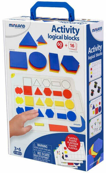 A Miniland Szín-forma-logika játékában 16 feladatlap feladványait kell megoldaniuk a gyerekeknek, de a játék lehetőséget ad a kreativitás kiélésére is. A játék kiválóan fejleszt a matematikai gondolkodást. A feladatlapokat a 95044 kódszámú Miniland logic blocks készlettel használhatjuk. A készletet elsősorban óvodás gyermekek számára tervezték, a logikai kockákat használhatják csoportosításra, osztályozásra, sorozatok alkotására, tulajdonságok alapján válogatásra stb. A készlet tartalma: