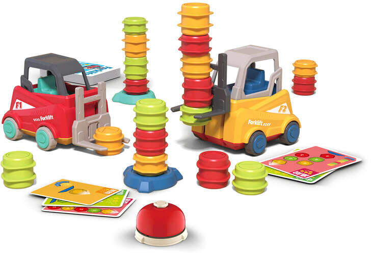 Targonca Kihívás Logikai Játék: Vidám és fejlesztő játék 3 éves kortól ? Ez a szórakoztató logikai játék fejleszti a finommotorikát, a problémamegoldó képességet és a kézügyességet. Két targoncával kell különböző nehézségű feladatokat megoldani: olajoshordókat kell felrakni a platformra a kártyákon látható sorrendben. A játék izgalmas és lebilincselő, a család kedvencévé válhat, ahogyan azt a vásárlói visszajelzések is mutatják! ? A játék tartalma: 2 db targonca (a vezetőfülke lenyomásával leereszkedik a villa) 18 db színes olajoshordó (3 szín, 2 kicsi, 2 közepes, 2 magas) 2 db platform 12 db kihívás kártya (különböző nehézségi szintekkel) 6 db egyénileg megrajzolható kihívás kártya Játékosok száma: 1-2 fő Korosztály: 3 éves kortól A játék menete: Válasszatok egy kihívás kártyát! Rakjátok fel a hordókat a targoncával a kártyán látható sorrendben! Emeljétek fel a hordótornyot a platformra! Az nyer, aki elsőként megnyomja a csengőt! ? Fejlesztő hatás: Finommotorika fejlesztése Problémamegoldó képesség fejlesztése Kézügyesség fejlesztése Színfelismerés és sorrendrakás gyakorlása A játék garantáltan szórakoztató kikapcsolódást nyújt a kicsiknek és nagyoknak egyaránt!