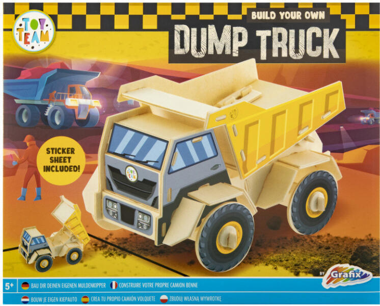 A teherautó könnyen összeszerelhető , és a matricák segítségével egyedivé tehető. A játék során a gyerekek fejleszthetik kézügyességüket, finommotoros mozgásukat, térlátásukat és problémamegoldó képességüket. A Grafix Build Your Own Dump Truck nemcsak szórakoztató, de építés közben a gyerekek ismeretei is gazdagodnak . A gyerekek megismerkednek a teherautók szerkezetével és működésével, miközben szórakoznak. Mérete:23*18,5cm