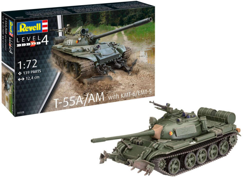 Revell T-55A/AM with KMT-6/EMT-5 1: 72 makett harcjármű (03328) (03328_R)