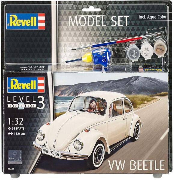 Revell VW Beetle (Kafer) Model Set autó 1:32, 24 darabos + festékek + ragasztó + ecset