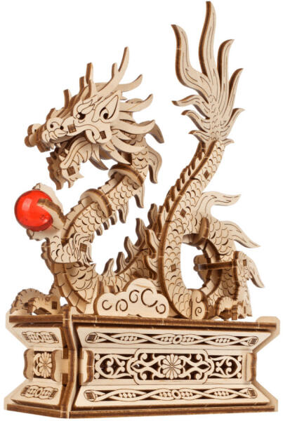 A Sárkány éve köszönt be 2024-ben! A kínai újév február 10-én kezdődött, és az idei a Sárkány jegyében telik, mely a kínai állatöv ötödik jelképe. A Sárkány különleges jel, hiszen az egyetlen képzeletbeli állat a kínai állatövben. Összesen öt Sárkány létezik, melyek egy-egy elemet reprezentálnak: fém, föld, tűz, víz és fa. Különösen izgalmas, hogy 2024 sárkány éve, hiszen ez az alkalom csak hatvan évente fordul elő! Nem is csoda tehát, hogy ez megihlette a Ugears tervezőit, akik ennek hatására megalkották ezt a lenyűgöző modellt. A Sárkány az uralkodás és az udvari hatalom szimbóluma, találtak már sárkányokat ábrázoló leleteket Kínában mintegy 8 000 évvel ezelőttről is. Ellentétben az európai sárkányokkal, melyeket félelmetes szörnyekként jelenítek meg a különböző művekben, a kínai sárkányok a jólét és a szerencse szimbólumai. Gyakran ábrázolják őket egy lángoló gyönggyel a foguk vagy karmuk között, ami az energiát és a teremtést jelképezi. A gyöngy emellett bölcsességet, spirituális erőt és halhatatlanságot is jelenthet. Az Ugears Fa Sárkány modell egy 3D kirakó a szerencsét hozó sárkányról, mely egy lángoló vörös gyöngybe kapaszkodik. A hosszú, tekergőző, négy végtagú sárkány megjelenését a kínai művészeti ábrázolások inspirálták. A sárkány egy különleges állványon ül, amelynek rejtett fiókja kinyílik, ha megnyomsz rajta virágnak álcázott titkos gombot. Amennyiben neked úgy jobban tetszik, a Sárkányt le is vehete a talapzatról és kiállíthatod önmagában is. Remek éke lehet akár a nappalidnak, akár az irodai asztalodnak. Ha még különlegesebb felhasználási módot szeretnél, akkor rejts el üzenetet, egy jóslatot vagy egy apró kincset a Fa Sárkány alapjába! A modell 141 alkatrészből áll és becsült összeszerelési ideje 2 óra . Az összeillesztéséhez semmilyen ragasztóra vagy vegyi anyagra nincs szükség!
