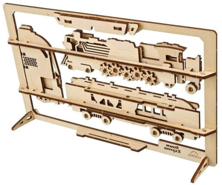 Hozd vissza a korai vasutazás romantikáját ezzel a múltat idéző makettel, mely a UGEARS termékcsalád része! Ez a 2.5D fa alkatrészekből összeszerelhető képmodell egy klasszikus gőzmozdonyt ábrázol, melyet három különböző nézőpontból csodálhatsz meg. A szemet gyönyörködtető megjelenése mellett még remekül működő mechanikus elemekkel is rendelkezik! Összeszereléséhez semmilyen ragasztóra vagy vegyi anyagra nincs szükség! Becsült összeszerelési idő: 30 perc Darabszám: 79 Hozd vissza a korabeli vonatozás élményét a UGEARS remekbe szabott képmakettjével! Ez a fa alkatrészeből álló, saját kézzel összeszerelhető gőzmozdony három különböző nézőpontból csodálható meg. A szerkezet részét képező mozgó alkatrészek pedig igazán élővé teszik! Az elegáns mozdony az 1900-as évek elejének luxus vonatainak kinézetéből vett ihletett és kifejezetten részletes. A UGEARS 2.5D-s fa képmodelljeit statikus kiállítási darabnak tervezték, de mozgó alkatrészekkel rendelkeznek, melyek által életre kelnek! Minden modellhez keret és állvány is tartozik a bemutatáshoz. Ez a gyönyörű gőtzmozdonyt ábrázoló kép minőségű kompozit fából készült, adott esetben akár festhető is, ha éppen úgy kívánod. Az összeillesztéshez szükséges lépések mind le vannak írva a csomag részét képező útmutatóban. Ajándékozd meg magad vagy ismerőseidet ezzel 2.5D-s kirakóval és kóstolj bele a modellezés izgalmas világába!