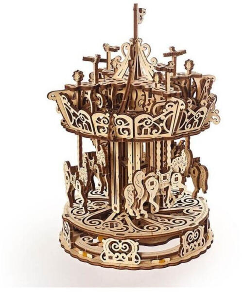 A Ugears legújabb modellje igazi karneváli hangulatba repít ezzel a gyönyörűen megmunkált, mérnökien precíz körhintával. Idézd fel a vásárok emlékét, a megannyi csábító standot, a sülő ételek illatát, a szédítő kakofóniát, ahogy a körhinta magával repít és csak száguld körbe, körbe, körbe... A körhinta tökéletes ajándék lehet idősnek és fiatalnak, ha az ember egy kicsit ki akar szakadni a hétköznapok banalitásából, és újra akarja élni a vásárok hangulatát. Akárcsak a korábbi UGears modellek, a körhinta is ugyanazzal a gondos, mérnöki precizitással készült, ugyanolyan minőségi, lézer vágott fából. Összeszerelése nem igényel ragasztót, csupán az útmutató pontos követését. Ideális ajándékötlet lehet stresszlevezetésnek, modellezőknek, mérnöki műcsodák rajongóinak. 14 éves kortól ajánlott. További információk a modellről: