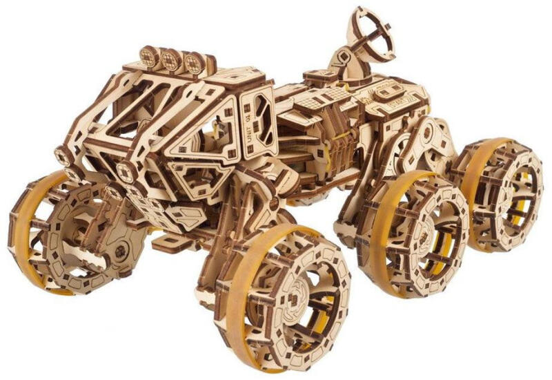 Mindig is álmodoztál a világűr felfedezéséről? Ezzel bizony nem vagy egyedül! Az emberiség történetében hatalmas előrelépés lesz, mikor majd egy napon meghódítjuk a Marsot... Addig pedig itt van a UGEARS futurisztikus modellje, melyet saját magad rakhatsz össze a minőségi fa alkatrészekből! A modell összeszereléséhez semmilyen ragasztóra vagy vegyi anyagra nincs szükség! Becsült összeszerelési idő: 8 óra Darabszám: 562 A NASA már évek óta daolgozik azon, hogy egy napon embert jutasson a Marsra. Ha egy napon az emberiség eljut egészen a Vörös Bolygóra, akkor ott bizony szükség lesz egy közlekedési módra. Évekkel ezelőtt az asztronauták már a Holdon is használtak autó-szerű szerkezetek, több küldetés során is. A UGEARS most egy azokhoz hasonló, futurisztikus jármű modelljét alkotta meg. Rakd össze és kacsints bele a jövőbe! A UGEARS Marsjáró mechanikus modell egy elképzelt, jövőbeli űrkutatási eszközt ábrázol. A hatkerekű jármű egy két asztronauta befogadására alkalmas kabinnal rendelkezik. A benne lévő mechanikának köszönhetően pedig hűen reprezentálja egy hasonló jármű mozgását. Ahogy azt már a UGEARS modelleknél megszokhattuk a makett telis-tele van különleges részletekkel, többek között találhatunk a marsjárón egy lehajtható hátsó rámpát, egy 360°-ban forgatható antennát, valamint egyedi gravírozásokat, melyek tovább emelik a modell valósághűségét. Rakd össze ezt a lenyűgöző marsjáró modellt és tekints vele előre a jövőbe!