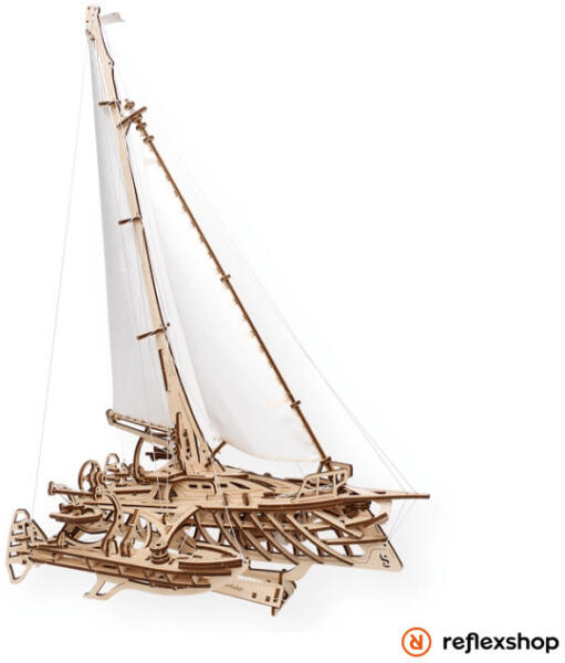 Szeretnéd átélni a nyílt vízi hajókázás élményét? Az UGEARS Trimarán hajó most igazán nagy segítségedre lehet ebben. Szerkezetének köszönhetően könnyedén megismerkedhetsz egy vitorláshajó minden felszerelésével: csörlők, kötelek, finoman kialakított hajótest, gerendák. Csak építsd meg, és érezd magadat vérbeli tengerésznek! Szeretnéd átélni a nyílt vízi hajókázás élményét? Az UGEARS Trimarán hajó most igazán nagy segítségedre lehet ebben. Szerkezetének köszönhetően könnyedén megismerkedhetsz egy vitorláshajó minden felszerelésével: csörlők, kötelek, finoman kialakított hajótest, gerendák. Csak építsd meg, és érezd magadat vérbeli tengerésznek! A különleges jármű összeszereléséhez nincs szükséged ragasztóra vagy csavarokra, a doboz minden, az összeszereléshez szükséges elemet tartalmaz! 14 éves kortól ajánlott. További információk a modellről: