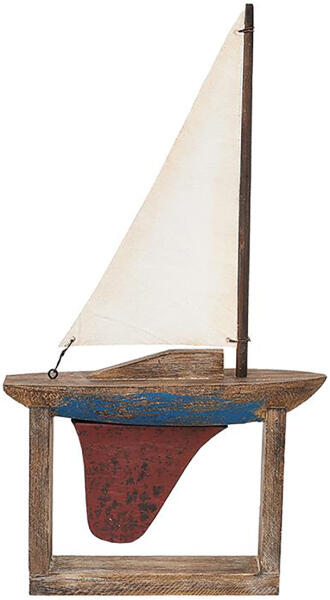 TERMÉKLEÍRÁS: vintage stílusú, festett vitorláshajó tömör fából.