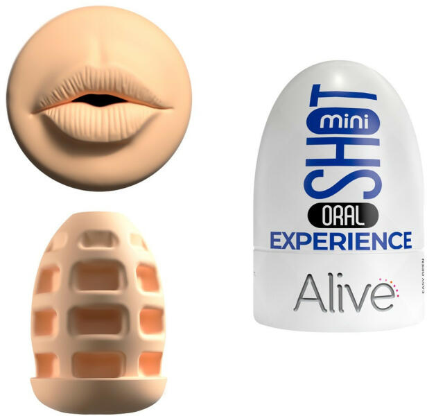 A kompakt, kis méretű maszturbátorok régóta nagy népszerűségnek örvendenek, számos gyártó követte a Japán Tenga Egg példáját, ami az első olyan típusú holmi volt a piacon. Többnyire eldobható változatban gondolkodnak a gyártók, vékonyka anyagokat használnak, amik egy esetleg néhány használatot bírnak ki. Az Alive ezen Shot Mini névre hallgató termékeiről ezt nem lehet elmondani, ugyanis igen vastag, jó minőségű anyagból készültek a betétek, amik könnyen kimoshatók, mindeközben tartósnak is tűnnek. A dolog egyébként egyszerű, a betét kis méretű, ugyanakkor rugalmas, markunkba véve kényelmesen elfér, de ha a péniszre húzzuk akkor annak jelentős részét képes befogadni, a többi már a szokásos, mintha nem is használnánk eszközt. A betét járata némileg mintázott, ami növeli a stimulációt, de markunk szorítóereje a leglényegesebb tényező. A termék merev műanyagból készült, töltényt formázó dobozkával rendelkezik, amibe tisztítás és teljesen száradás után vissza is helyezhetjük, tárolhatjuk azt.