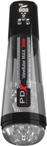 Az átlátszó maszturbátor, a PDX Elite ViewTube MAX egy átlátszó és könnyen kézben tartható tokban, védőfedéllel. A legjobb rálátás a péniszre, ha színes fények veszik körül, miközben élvezi (és felduzzad)!