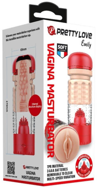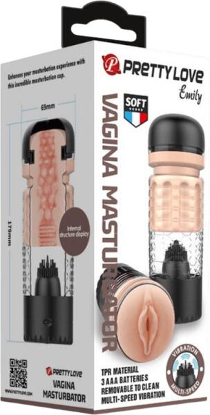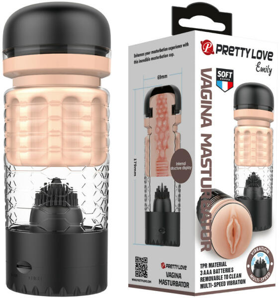 Pretty Love Emily vibrációs maszturbátor Ismerd meg a Pretty Love Emily Vibrációs Maszturbátor új generációját, amely a férfiak számára készült különleges önkielégítő eszköz, tervezve a maximális élvezet elérésére. Ez a kompakt, mégis hatásos vibrációs maszturbátor egy áttetsző, hengeres testtel rendelkezik, melynek felső részén egy bőrszerű, puha anyagból készült betét található. Ez a különleges betét vaginát formázó bemeneti nyílással rendelkezik, amely kupakkal zárható, így biztosítva a diszkréció és a higiénia magas szintjét. Előnyök: