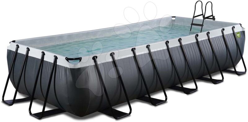 Medence szűrős szivattyúval Black Leather pool a holland Exit Toys műhelyéből egy 540*250*100 cm méretekkel rendelkező föld feletti nagyon tágas medence, mely szülőknek és gyerekeknek egyaránt kellemes felfrissülést nyújt majd a nyári hőségben. Sötét robosztus medence oldalfala luxus fekete bőrhatással minden udvart és kertet még szebbé varázsol, erős acél medencekeret portechnológiával kezelve ellenáll a korróziónak és a kedvezőtlen időjárási viszonyoknak egyaránt. Medence a 14 erős fém lábnak köszönhetően nagyon stabil, szilárdan megáll a helyén. A medencébe létrán keresztül vezet az út, melynek lépcsőfokai csúszásmentesek. A víz tisztaságáról kazettás szűrőszivattyú gondoskodik, mely biztosítja a zavartalan vízáramlást és egyben tisztítja is azt.  A medence térfogata 12600 liter, a medence belső része világos szürke színű, aminek köszönhetően a víz tiszta és friss benyomást kelt. Medence teljes súlya 113 kg, az úszóterület méretei 510*210 cm, a víz ajánlott mélysége 90 cm. Teljes méretei a medencének a vázzal együtt 610*320 cm. Medencében kényelmesen elfér 9 felnőtt személy, vagy több gyermek 6 éves kortól.  A medence 3-rétegű oldalfala tartós és vastag PVC anyagból   és poliészterből készül, amely hosszú élettartammal büszkélkedik. A csomag tartalmaz oldalfal javítókészletet is.  Ez a nagyszerű, modern medence bármely kertbe megállja a helyét, a forró nyári napokon a legkellemesebb felfrissülést nyújtja az egész család számára éveken keresztül.  Holland Exit Toys márka már hosszú évek óta halmozza el kicsiket és nagyokat elsőosztályú outdoor termékekkel. Exit Toys termékek megfelelnek a legszigorúbb EU-s normáknak és szabványoknak, TÜV, CE, EN71 tanúsitványokkal rendelkezik. Medencék egyedi holland stilusban pompáznak, a csúcsszuper minőség pedig garancia, hogy a termék éveken keresztül nyújt szórakozást az egész család számára.