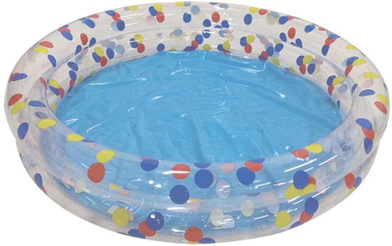 Ez a vidám, pöttyös mintázatú felfújható medence tökéletes választás a kicsik nyári kikapcsolódásához. Két rétegből álló gyűrűs kialakítása stabilitást biztosít, miközben könnyen felfújható és leengedhető.