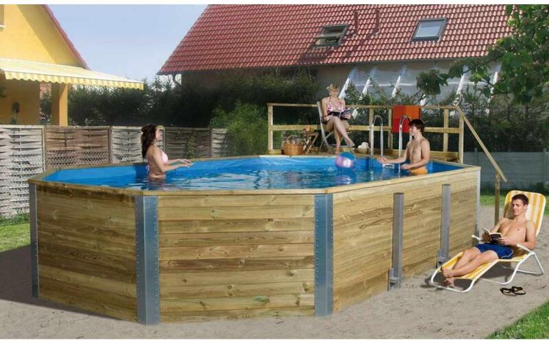 A medence természetes fa gerendaváza minden kertben jól néz ki és harmonikusan illeszkedik a környezetbe