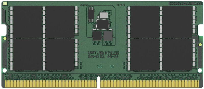 A Kingston KVR64V52BD8-32 ValueRAM sorozatú memóriamodulja négy 1G x 16 bites FBGA komponensre és egy órajel-meghajtóra (CKD) épül DDR5-6400 CL52 Clocked Small Outline DIMM (CSODIMM), 2Rx8. Az SPD a JEDEC DDR5-6400 időzítési szabványának megfelelően van programozva, a késleltetés 52-52-52-52 1,1V-on. Mindegyik 262 tűs CSODIMM arany érintkezési ujjakat használ. Az elektromos és mechanikai specifikációkat lásd a PDF-ben.