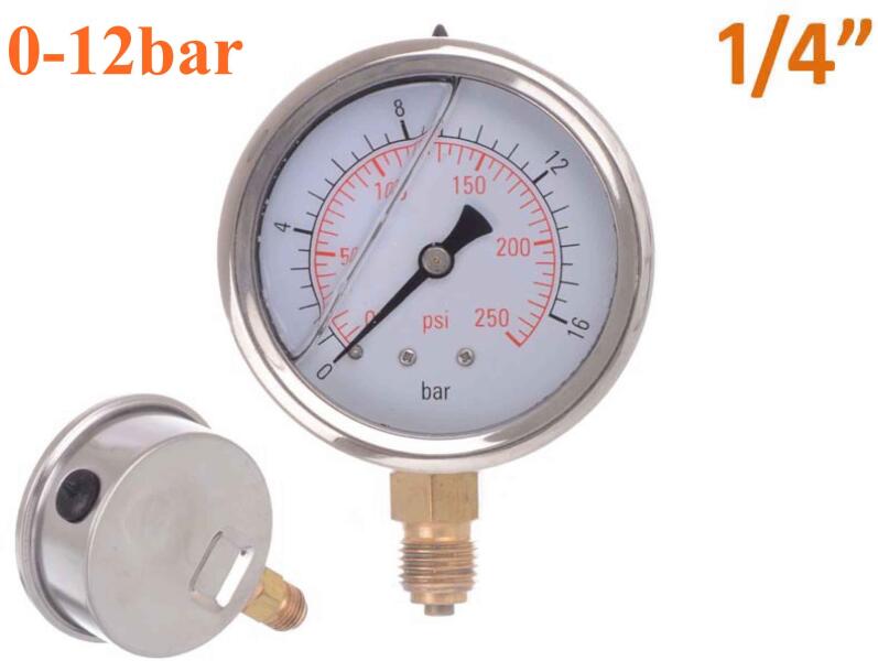 Glicerines nyomásmérő 0-12bar, alsó menet: 1/4 (YYL-01.12B/X)