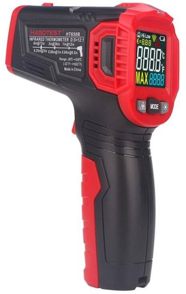 A HT650B infravörös hőmérő lehetővé teszi az érintésmentes méréseket -50°C-tól 550°C-ig vagy -58°F-től 1022°F-ig. A használata rendkívül egyszerű - csak irányítsa a kiválasztott tárgyra és nyomja meg a gombot. A 12 mérési pont magas pontosságot biztosít.