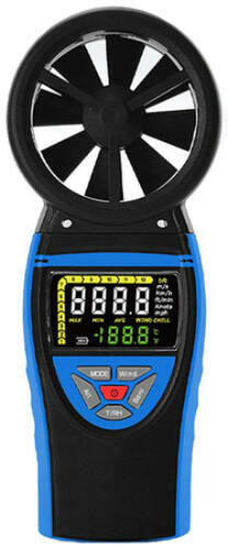 - Szélsebesség-mérő, szélsebesség hőmérsékletmérő műszer. - Szélsebesség mérési tartománya: 0,3 m/s – 30 m/s. - Szélsebesség mérés felbontása: 0,1 m/s. - Szélsebesség mértékegységek: m/s, láb/perc, csomó, km/h, mérföld/h. - Valós idejű mérés, a propeller segítségével. - Hőmérséklet mérési tartomány: -10°C - +45°C. - Hőmérséklet mérés felbontása: 0,2°C. - Hőmérséklet mértékegységek: °C, °F. - Harmatpont_ 0°C - 50°C. - Minimális és maximális érték kijelzése. - Átlag számítása. - Az utolsó mért érték kijelzőn tartása. - Fotóállványra rögzíthető. - Tápellátás: 1 db 6F22 elem, 9 VDC (nem tartozék). - Méretek: 82 x 40 x 210 mm. - CE minősítés.