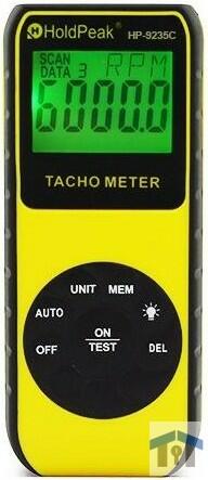 Lézeres optikai mérőfejjel rendelkező műszer, mellyel bármilyen, forgó mozgást végző alkatrész fordulatszáma megmérhető. A mellékelt fényvisszaverő matricák használatával, a műszer által kibocsátott lézerfény segítségével mérhető meg a fordulatszám. - Lézeres, optikai fordulatszám mérés. - Mérési távolság: 50mm-600mm. - Fordulatszám mérési tartomány: 6-99999RPM. - Kijelzési felbontás 999.9RPM-ig: 0.1RPM, felette: 1RPM. - 5 digites LCD kijelző, 10mm-es karaktermagassággal. - Automatikus mérési tartomány beállítás. - Mintavételezési idő: 0.8mp. - Maximum, minimum és utolsó érték tárolása. - Automata kikapcsolás. - Öntapadós, fényvisszaverő matricacsík (60cm). - Műanyag műszer és tartozéktartó doboz. - Tápfeszültség: 3VDC 2 db AAA elemről. - Áramfelvétel: max. : 35mA. - Működési hőmérséklet: 0°C-50°C. - Működési páratartalom: maximum 75%. - Méretei: 122mm x 52mm x 28mm. - Súlya: 130g (elemmel). - CE minősítés.