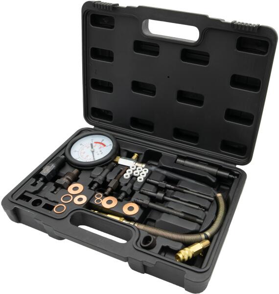 Ismertetés Személygépkocsi, kisteherautó Közvetlen befecskendezésű és kamrás diesel motorokhoz Mérési tartomány: 0-70 bar Tömlő hossz: 355mm M10, M12, M14 izzítógyertya adapter M20 diesel injektor adapter Gyorscsatlakozó Tömítés és alátét készlet, 90 fokos könyök és szorítólemez Technikai adatok Izzítógyertya adapter M10X1.25, hossz 114.5mm Izzítógyertya adapter M10X1.0, hossz 119mm Izzítógyertya adapter M10X1.25, hossz 73.5mm Izzítógyertya adapter M12X1.25, hossz 54mm Izzítógyertya adapter M14X1.25, hossz 72mm Injektor adapter M20X1.5, hossz 78mm Injektor adapter M24X2.0, hossz 64mm Alkalmas BMW, Carbodies, Citroen, Dacia, Daihatsu, Fiat, Ford, Holden, Isuzu, Land Rover, Leyland/Daf, Mazda, Mercedes-Benz, Mitsubishi, Nissan, Opel, Peugeot, Renault, Rover, Seat, Toyota, Vauxhall, Volkswagen, Volvo