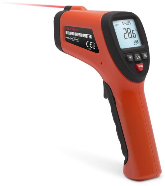 Infravörös hőmérsékletmérő műszer lézer irányzékkal. Általános hőmérsékletmérési feladatokhoz ideális ha nehezen megközelíthető a mérendő felület. Használatával elkerülhetőek az égési sérülések mérés közben. Könnyű és ergonomikus kialakítású készülékház.