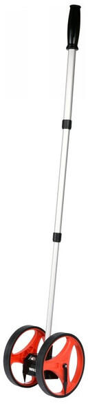 Beltéri és kültéri használatra is alkalmas távolságmérő kerék, 0,01-10 000 m távolság tartományban, 160 mm átmérőjű kerékkel, ± 0,05% pontossággal, teleszkópos fogantyúval, mechanikai sérüléseknek ellenálló ABS anyagból készült burkolattal.