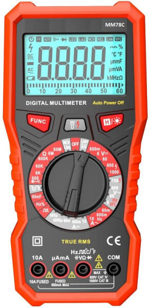 Digitális multiméter TRMS, Ohm, Hz, C, °C, dióda, MM78C Tracon