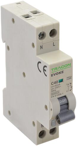 TRACON Kombinált védőkapcsoló, elektronikus, 2P, 1 modul, B kar. B16, 30mA, 6kA, A (EVOKEAB1603)