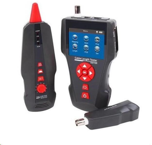 UTP/STP (RJ-45), koaxiális (BNC), telefon (RJ-11) és USB vonalak tesztelője. Ohmikus mérési módszerek, beleértve a fejlett PoE és PING válasz teszteket. Kábelcsatlakozások keresésére szolgáló érzék...
