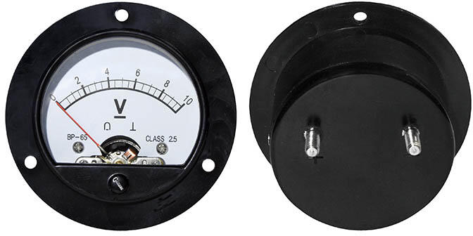 Analógový okrúhly voltmeter.