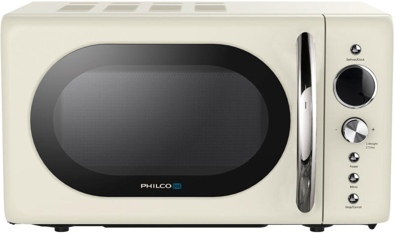 Szabadon álló mikrohullámú sütő Philco PMD 2051 C krémszínű, 20 literes belső térfogattal. Az összetéveszthetetlen mikrohullámú sütő krémszínű dizájnnal minden konyhapulton feltűnik majd. RETRO kialakításával és egyszerű kezelésével vonzza magára a figyelmet.