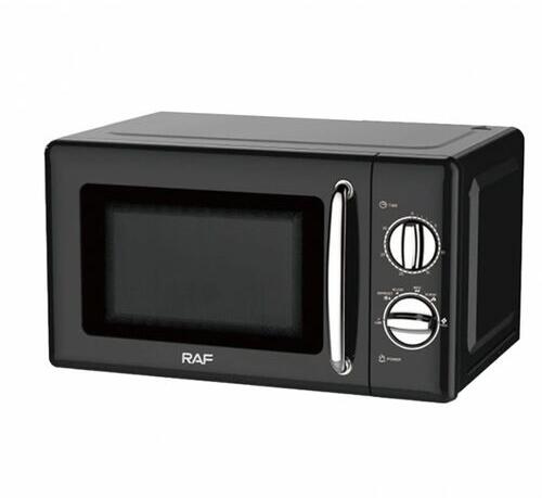A Raf R-8008B mikrohullámú sütő kényelmet kínál a mindennapi főzés során. 5 teljesítményszinttel és kiolvasztás funkcióval rendelkezik a rugalmas ételkészítés érdekében. A belső világítás és a forgó tárcsa egyenletes főzést biztosít. Leírás: Gyártó: RAF Modell: R. 8000B Teljesítmény: 600-900W Tápellátás: 220V Mikrohullámú sütő kapacitása: 20 l Mikrohullámú sütő teljesítménye: 800 W Teljesítményszintek: 6 Kijelző: Nem Vezérlés típusa: Analóg
