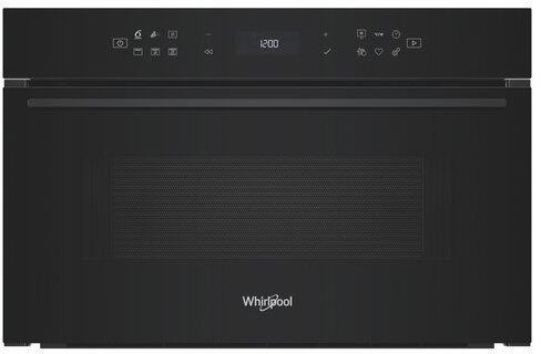 Whirlpool WMD7O4TB Beépíthető mikrohullámú sütő Fekete készülékszín, 31 liter űrtartalom, érintőszenzoros vezérlés, mikrohullám teljesítmény 1000W, CRISP, grill (800W), párolás, kenyér felolvasztás, fehér szöveges LCD kijelző, 3D melegítés, automatikus funkciók, teherbíró, lenyíló üvegajtó, gyermekzár, Készülékméret (Mag. xSzél. xMély. ) (mm): 385x595x468