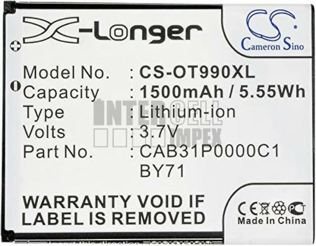 Alcatel One Touch Pop C1 OT-4015D series 3.7V 1500mAh 5.55Wh Li-ion mobiltelefon akku/akkumulátor