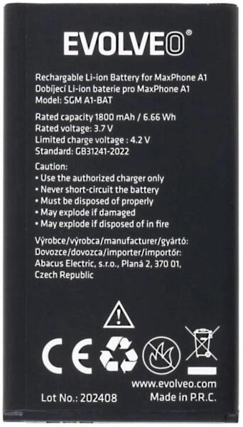 EVOLVEO eredeti 1800 mAh akkumulátor MaxPhone A1 készülékhez (SGM-A1-BAT)