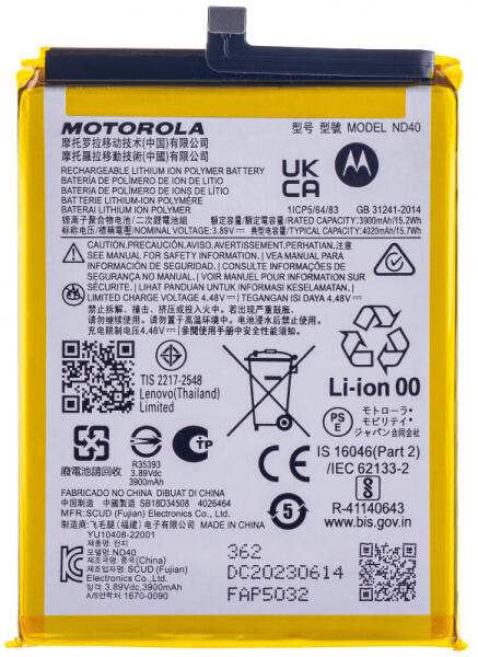 Motorola ND40 akkumulátor Edge 30-hoz SB18D34507 Eredeti alkatrész Samsung licenccel, amelyet a telefon meghibásodott akkumulátorának cseréjére használhatunk.