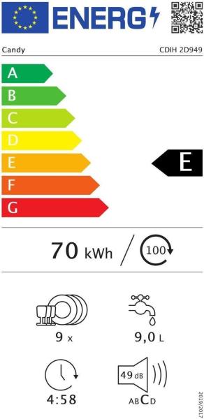 CANDY CDIH 2D949 Brava Mosogatógép 9 terítékes Beépíthető E Fehér (CDIH 2D949)