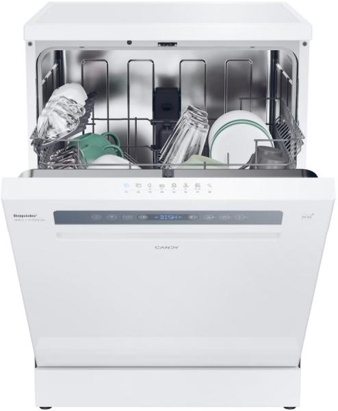 A Candy Rapido" a leggyorsabb és legtágasabb mosogatógép a piacon. A gyorsprogramok széles kínálata minden igényt kielégít, valamint leegyszerűsíti a mindennapi használatot a MAXI-TUB-nak köszönhetően, amely a legtágasabb kosár a standard méretű mosogatógépeknél, és lehetővé teszi a legnagyobb edények behelyzését is. Rövidebb mosogatási idő, több hely a mosatlan edényeknek!