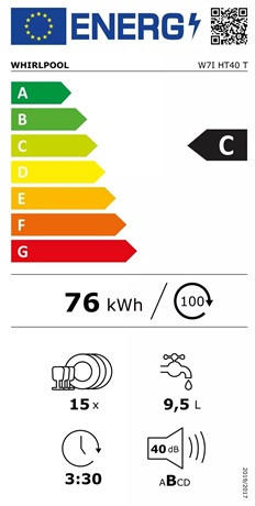 Whirlpool W7IHT40T W7I HT40 T Beépíthető Mosogatógép C Energiaosztály